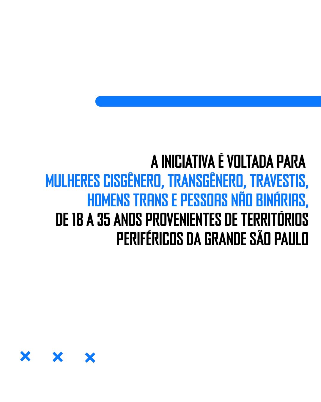 O edital é voltado para mulheres cisgênero, transgênero, travestis, homens trans e pessoas não binárias, com idades entre 18 e 35 anos, que sejam moradoras de territórios periféricos da Grande São Paulo.